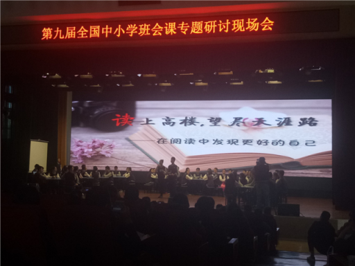 老师们现场观摩了三节优秀班会课,其中重庆第十一中学应刚老师的“‘读’上高楼,望尽天涯路”主题班会给老师们留下了深刻的印象。本节课在“大阅读”的环境下,利用丰富多彩的呈现形式,让学生交流分享阅读成果。整个班会班主任是起到总策划总导演的主导地位,通过学生之间小组合作、问题探究、层层深入,既锻炼了学生能力,又培养了学生的读书习惯。画龙点睛之处就在于最后应刚老师的总结,将本节班会课提到一个新的高度、厚度和维度。