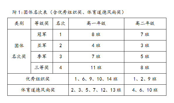 本次比赛得到了学校领导的高度重视,班主任认真筹备、组织严谨,同学们参与热情高、积极踊跃,为比赛的顺利推进奠定了良好的基础,营造了热烈的氛围。本届比赛以班级为单位组队报名参赛,共有24支代表队参赛。根据抽签分组,同名次比赛,决出前三名。经过紧张有序的比赛,最终高一(8)和高二(7)班分别斩获高一年级组和高二年级组桂冠,为系列比赛画上圆满的句号。