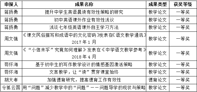 教学研究室积极组织教师参赛,参赛成果含专著2项,课题7项,论文60项。其中专著和课题均获一等奖,论文获22个一等奖,37个二等奖,我校参赛作品获奖率达98.5%。我校在第二次民办教育优秀成果评选活动中获此佳绩,是因为我校长期坚持科研兴校的结果,通过本次评选活动也进一步提升了我校教师教育教学的理论研究及实践探索水平。我校教育科研还行走在路上,我们将继续坚持教育科研为教学服务,为提升学校科研品质不懈努力。