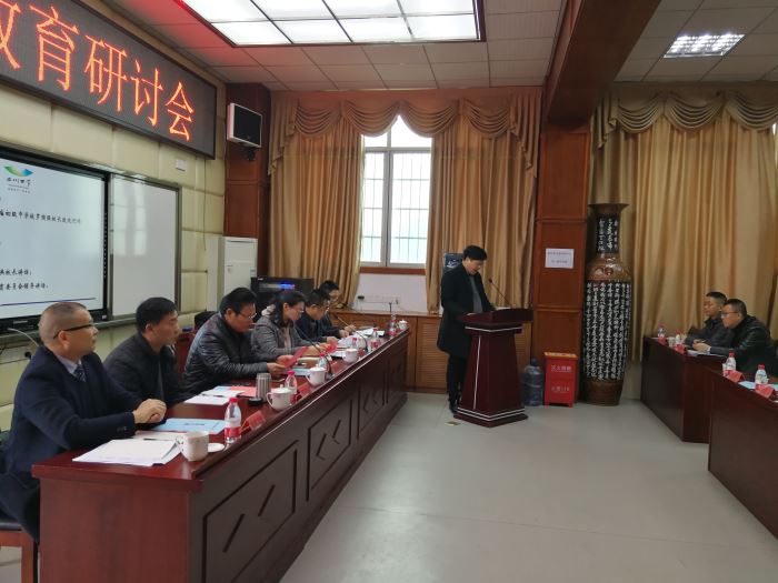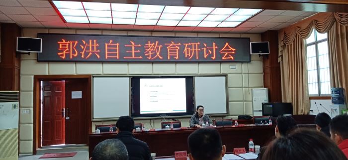 铜梁区大庙中学罗国强校长代表学校对参会的各位领导和老师表示欢迎,他从宣传发动、理论学习、课题研究等方面介绍了大庙中学在自主教育工作上所做出的努力及取得的成果。他表示学校在自主教育实践中尝到了甜头,2019年他们将继续探索和勇于尝试,让自主教育在大庙中学生根发芽。