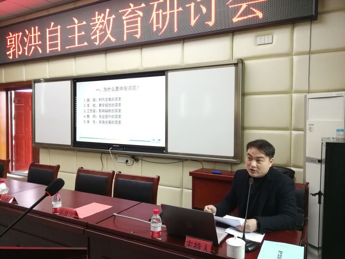 随后,重庆市必威登录首页大全官网校章磊老师给与会成员进行了课题申报的培训,他从国家、学校、工作室、教师和学生五个层面突破教师课题申报畏难情绪,引用中共中央、国务院印发《中国教育现代化2035》中八个基本理念(即以德为先、全面发展、面向人人、终身学习、因材施教、知行合一、融合发展、共建共享),这八个理念与自主教育的理念高度一致,大大提升了工作室成员对自主教育发展前景的认同感。章老师还从专业的角度以课题评审书为载体解说了课题申报的相关事宜,让大家受益匪浅。