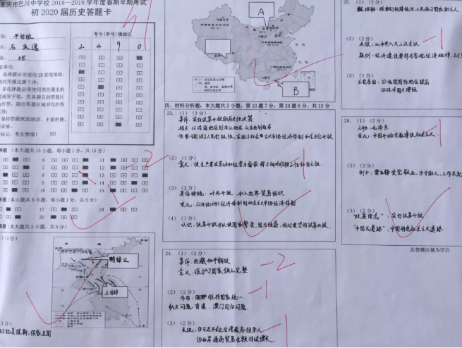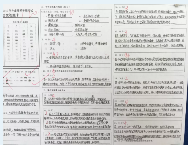 其实,这部分秘笈就是学校教务处前不久组织的2019年春期半期考试优秀答题卷展评评选出来的规范答题卡。在经过了班级、年级初评和学科组长们的复评之后,最终选出了这些答题卡在博雅楼大厅进行展示。下学期开学,学校还会在开学典礼上对这些规范答题卡的主人们进行全校表彰。