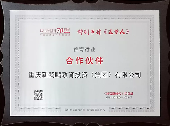 新鸥鹏凭借“教育+”模式获得《对话新时代》栏目组的青睐,从初选入围的数十家企业中脱颖而出,中国教育巴川系成功入围“中国品牌创新发展工程”,成为《对话新时代》推荐的教育行业标杆。