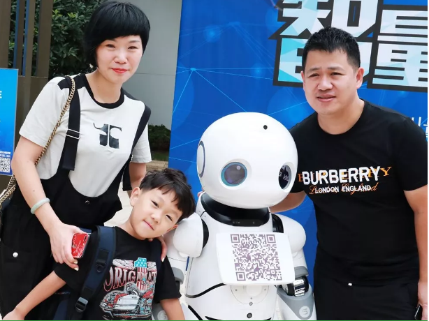 一年级的宝贝们对校门口的机器人“量量”充满了好奇: