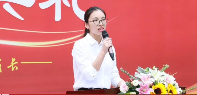 ▲汪秀娟老师作为教师代表进行发言,她鼓励同学们“汲取养分,储备知识,积蓄力量,追寻梦想”。