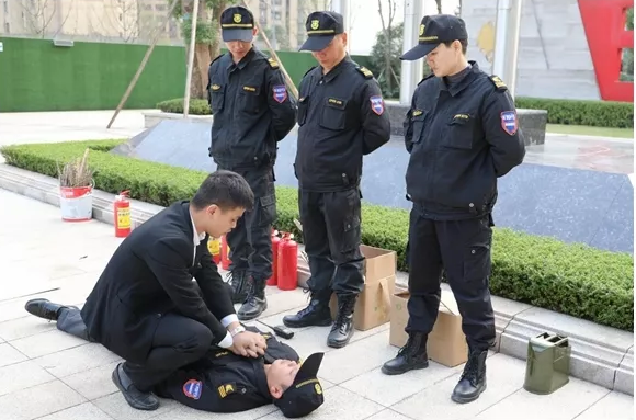 ▲生活老师与学校安保参加消防培训