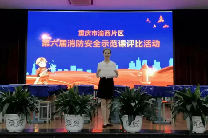 在10月24-25日举行的“重庆市渝西片区第六届消防安全示范课评比活动”中,王思雨老师就以声情并茂、环环相扣的精彩讲义夺得了一等奖,而这也是学校平日里“注重安全、敬畏生命”的最佳写照。