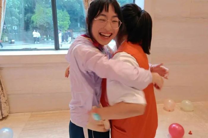 与好朋友紧紧拥抱,压爆气球,驱散烦恼