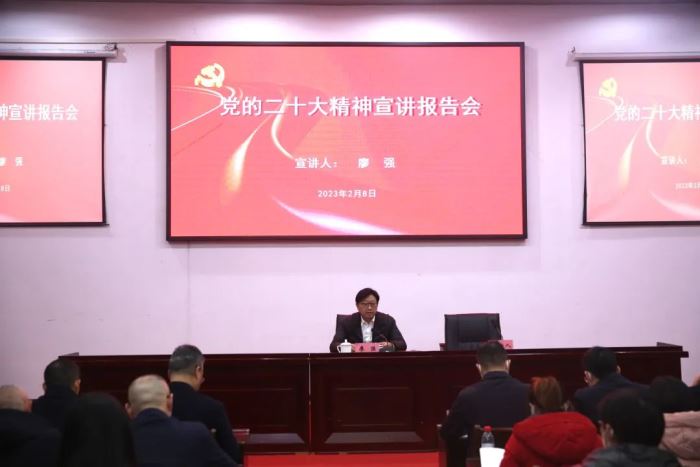 廖强副区长紧扣党的二十大报告原文,重点围绕党的二十大的主题和主要成果,过去五年的工作和新时代十年的伟大变革,马克思主义中国化、时代化,中国式现代化,全面建设社会主义现代化国家的目标任务,坚持党的全面领导和全面从严治党六个方面,对党的二十大精神进行全面系统深入的宣讲解读。