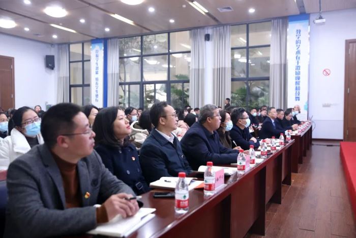 2月8日下午16:00,铜梁区委常委、常务副区长廖强同志在我校融汇楼111会议室开展党的二十大精神宣讲会。会议开始前,廖强副区长及各单位参会人员沿途参观了校园环境,听取了学校领导对开学情况、办学特色及学校发展等方面的介绍,党员干部们在交流中了解了各单位的党建活动开展情况,增进了相互了解和互学互进。