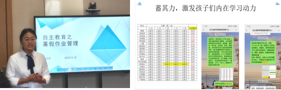 随后,南城巴川学校的张国娇老师则从任课教师的角度,分享了暑假作业管理的实践经验和心得体会。一是定其向,自主规划暑假作业明确学习方向,同时分享了学生的英语读记习惯的改变和精彩的暑期英语VLOG作品。二是蓄其力,激发孩子们内在学习动力。通过即时的反馈,不断地激励,学生的英语学习进步看得见。