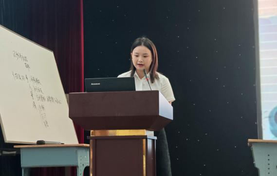活动的最后,由小班部 2024 届的唐绒老师进行分享,此次分享的主题为“创 意表达—写作”。写作是初中教学的难点之一,唐绒老师从明确功能性写作定义、讲解基本原理、提出写作的策略三个方面,并结合自己学习后的所思所感进行分享。这次分享让老师们明白写作教学的重点应从“学习写作 ”变为“学习写作过程 ”,也为老师如何教学功能性写作提供思考方向。