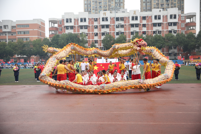 各学部各年级组成的方阵代表陆续入场,并在主席台下方一一展示了精彩的主题演出。STEAM 创新教育学部初 2026 届的学子们着丹青之衣,鲜衣怒马少年郎,书写溢彩青春歌。STEAM创新教育学部初2025届的学子们演绎龙舞精神,展现龙之传人的血气方刚。