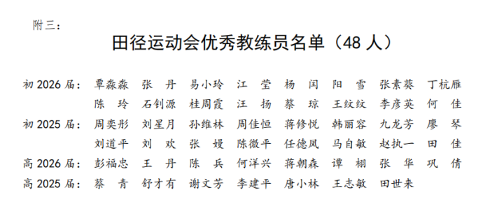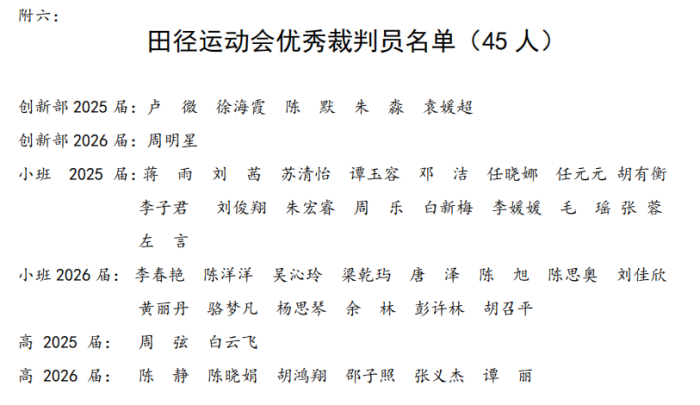 附五:优秀教练员名单; 附六:优秀裁判员名单;