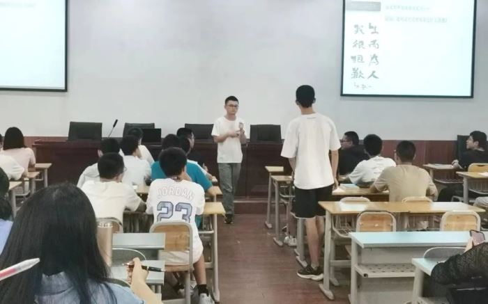 当天下午,高一年级举行了“开学第一课”现场展示课。谭栩老师从典故引出学生“自我介绍”以及师生间的第一次碰撞,接着从“什么是语文”“为什么学语文”“高中语文学什么”“怎么学语文”等四个方面引导学生对语文学科进行了全面而深入的探寻。