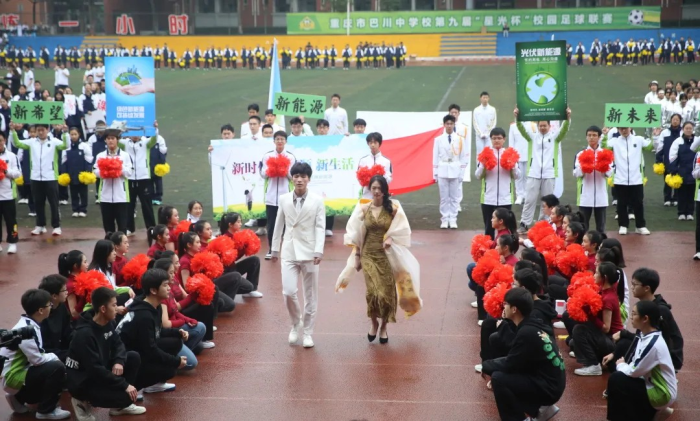 巴川新高中的少年们,以青春之名,织就了一场环保的梦幻秀。他们用新能源图标与标语拉开了环保大幕,将环保理念深植人心。废旧物品在他们的巧手下,仿佛被赋予了魔法,化身为一件件闪耀的华服,惊艳全场。这是一次废物利用的无限创意,也是一场绿色生活的青春赞歌。