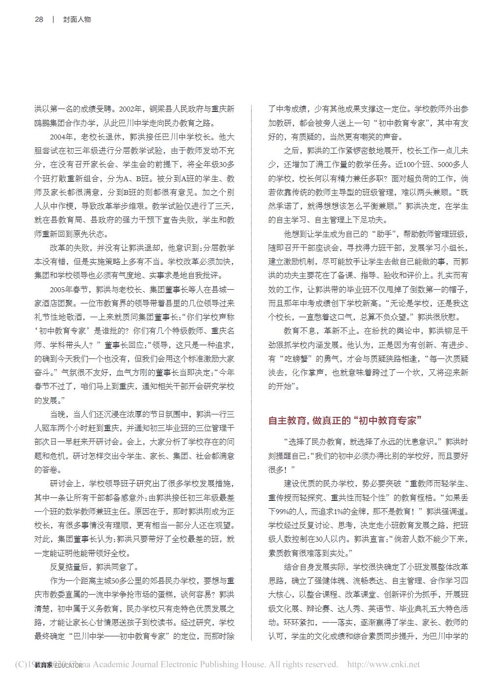 《教育家》杂志专访——在泥泞中蹚出自主教育路_访重庆必威登录首页大全官网总校长郭洪_吴爽