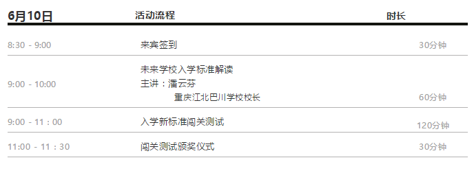 6月10日,江北巴川学校将在渝北区新牌坊新鸥鹏华冈教育MALL,举办一场别开生面的小学入学能力测评暨升学指导会。