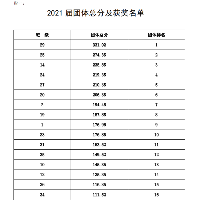 附一:团体总分及获奖名单; 附二:优秀运动员名单; 附三:最美志愿者名单;