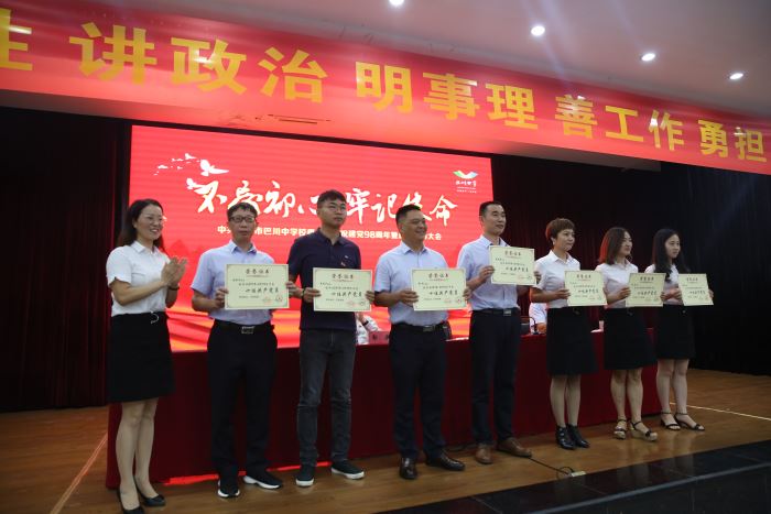 学校党委委员蒋扬勇同志宣读了表彰决定并组织颁奖,授予新高中党支部和第一党支部“先进党支部”称号,李杰等三位同志荣获“优秀党务工作者”称号,单迎华等10位同志荣获“十佳党员”称号,夏子青等67名同志荣获“优秀党员”称号并予以表彰。