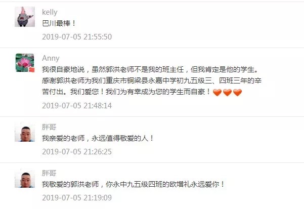 小编有话说:粉丝团的阵容太过强大,小编有点应接不暇。篇幅有限,不一而足。郭校从业数十年,教书育人,传道授业,毕生精力奉献给三尺讲台,如今桃李满天下。巴川男神,实至名归!