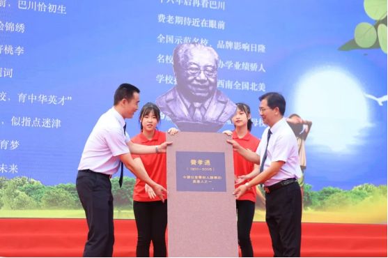 今天,初2019届的孩子们毕业了。他们为感师恩向学校捐建了一座费孝通先生的铜像,初2019届年级副主任秦勇刚老师介绍,孩子们希望以此感恩母校,追忆巴川发展,重温费老期望,并敬立铜像明志,盟誓再立新功。