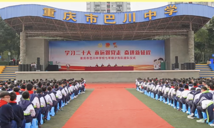 12月5日,我校七年级全体队员在操场隆重举行以“学习二十大 永远跟党走 奋进新征程”为主题的建队仪式。