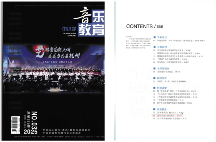 《<春节序曲>教学设计》登上《中小学音乐教育》,记录了课堂的蜕变,让学生体会到:原来音乐课不只是唱歌,还能听懂祖先的心跳。孙老师感慨:“当孩子们用手打起‘中国节拍’时,文化传承便有了温度。”