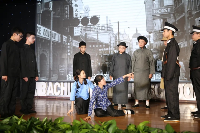 "为中华之崛起而读书!"当5班少年铿锵有力的誓言响彻剧场,历时30天的排演故事也随之展开。从最初彩排时《抵制日货,身陷囹圄》剧目的张力不足,到同学们连夜修改剧本;从主演韩濠骏因剧本变动而频频忘词的焦虑,到大家利用课余时间加紧排练的坚持——这场青春致敬的每一个细节都令人动容。
