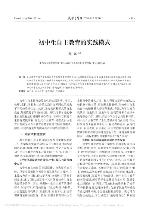 北大核心《教学与管理》2020年2月-初中生自主教育的实践模式_郭洪